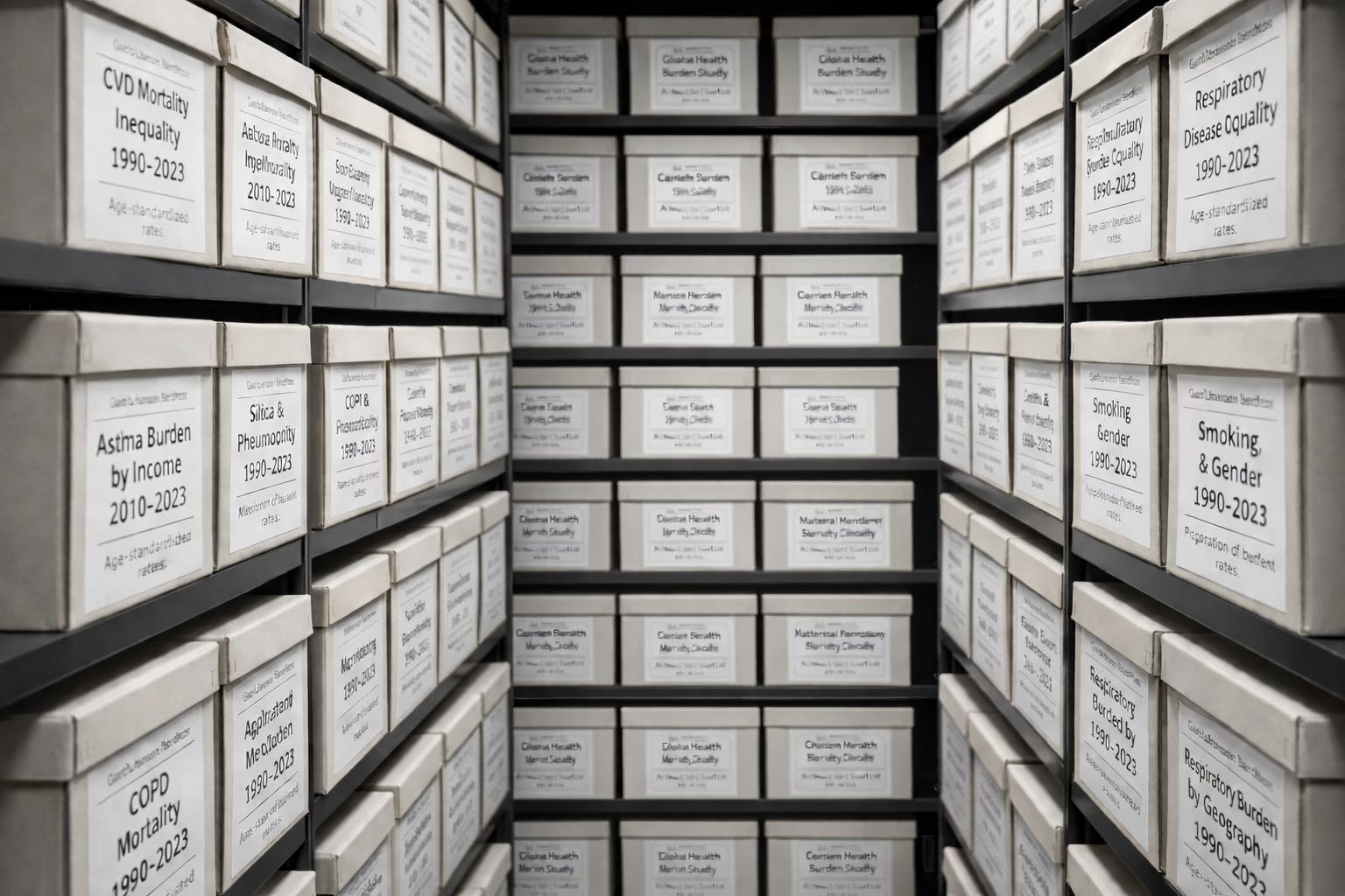 Risk attribution is handled with similar precision. Smoking remains the dominant contributor to chronic obstructive pulmonary disease. Occupational exposures such as silica explain much of the burden of pneumoconiosis. High body-mass index emerges as a growing risk factor for asthma. Each estimate is bounded by uncertainty intervals. Each trend is contextualised by time and demography. Nothing is overstated; nothing is casual.